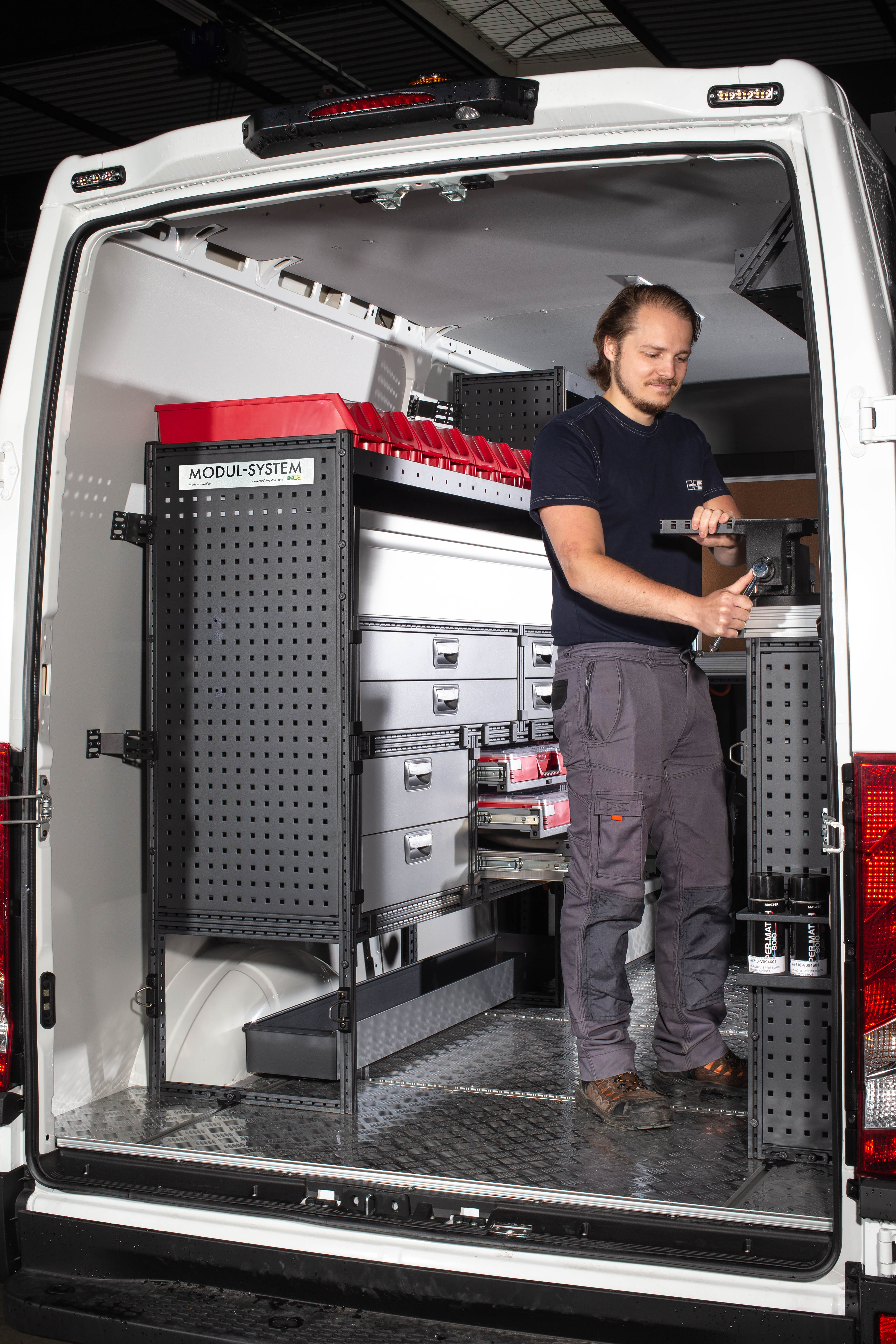 Modul-System, leader européen en aménagement métallique pour Véhicules Utilitaires Légers, apporte plus de 50 ans d’expertise. Nous proposons des solutions complètes, de la conception à l’installation, répondant aux normes de sécurité et fiabilité. Notre offre inclut plans 3D et conseils personnalisés pour chaque métier et parc de véhicules.